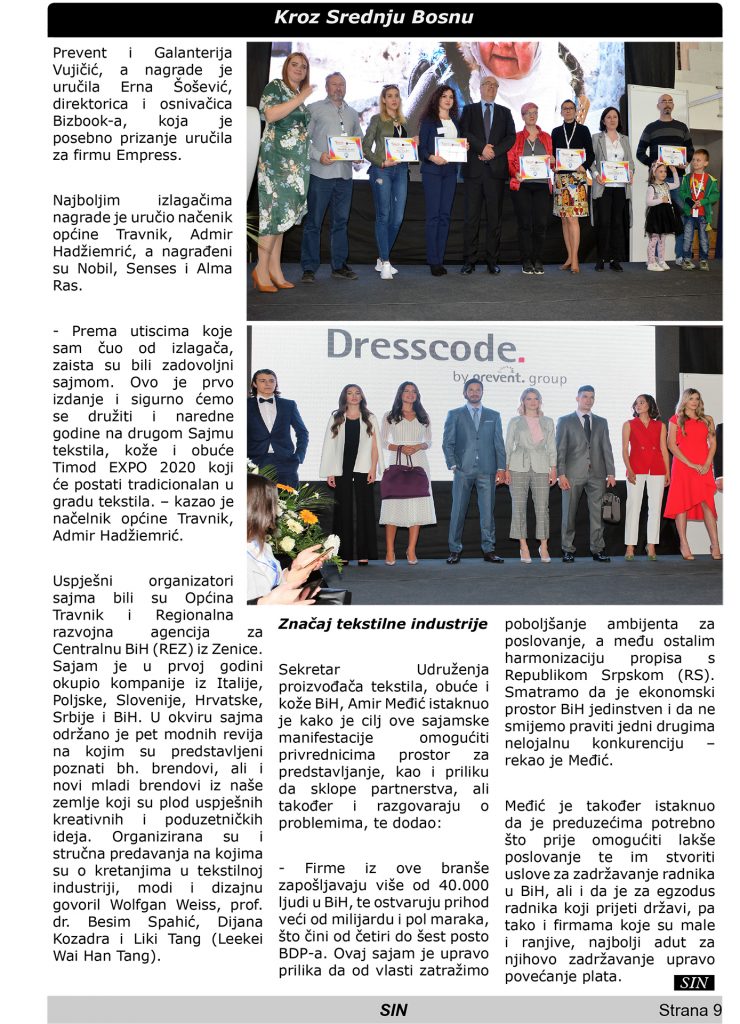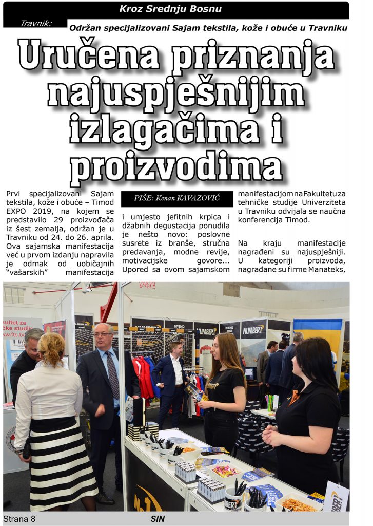 Prvi specijalizovani Sajam tekstila, kože i obuće – Timod EXPO 2019 na kojem se predstavilo 29 proizvođača iz šest zemalja održan je u Travniku od 24. do 26. aprila. Ova sajamska manifestacija već u prvom izdanju napravila je odmak od uobičajnih „vašarskih“ manifestacija i umjesto jefitnih krpica i džabnih degustacija ponudila je nešto novo: poslovne susret iz braše, stručna predavanja, modne revije, motivacijske govore. Upored sa ovom sajamskom manifestacijom na Fakultetu za tehničke studije Univerziteta u Travniku odvijala se naučna konferencija Timod, piše SIN.
